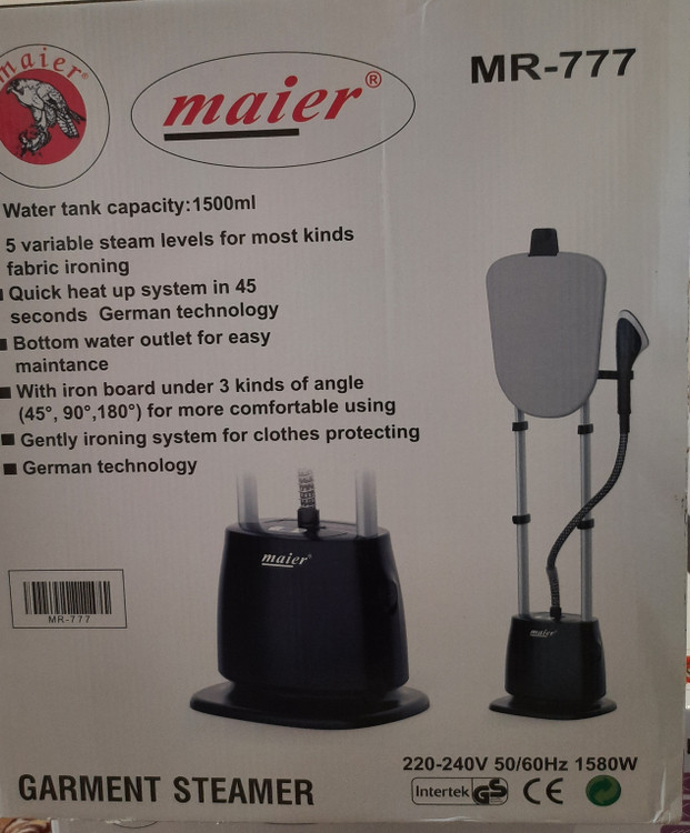 دستگاه اتو بخار ایستاده مایر مدل mr-777 دارای توان حرارتی 1580 وات و 5 بار قدرت می باشد.
