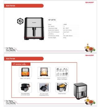 برند Sharp یک شرکت ژاپنی است که در زمینه تولید الکترونیک و لوازم خانگی فعالیت میکند. این برند معروف به دلیل تولید محصولات با کیفیت بالا و طراحی زیباست و در بازار جهانی شناخته شده است. محصولات شارپ شامل تلویزیونها، لپتاپها، دوربینهای دیجیتال، محصولات آشپزخانه، ماشینهای اداری و دیگر لوازم الکترونیکی میشود. برند Sharp از سال 1912 فعالیت خود را آغاز کرده و در حال حاضر به عنوان یکی از برندهای معتبر در صنعت الکترونیک شناخته میشود. این برند برای تولید محصولات خود از فناوریهای نوین و روشهای پیشرفته تولید استفاده میکند و تمرکز آن بر روی تحقیق و توسعه محصولات جدید است. سرخ کن بدون روغن یا Air fryer، یک دستگاه الکترونیکی است که با استفاده از فناوری هوای گرم کننده، بدون نیاز به روغن، غذاها را سرخ و پخت میکند. این دستگاه دارای یک محفظه بزرگ است که شامل سبد سرخ کنی میشود. غذاهای مورد نظر درون سبد قرار گرفته و به کمک هوای گرم، سرخ و پخت میشوند. در واقع، در سرخ کردن با روغن، غذا در روغن حل شده و در دمای بالا سرخ میشود، در حالی که در سرخ کن بدون روغن، با ایجاد جریان هوای گرم، هوا به طور یکنواخت در اطراف غذا میگردد و حرارت مورد نیاز برای پخت و سرخ شدن غذا را فراهم میکند. به همین دلیل، در سرخ کن بدون روغن، میزان چربی مصرفی در غذاها کاهش مییابد که به سلامتی بیشتری کمک میکند.