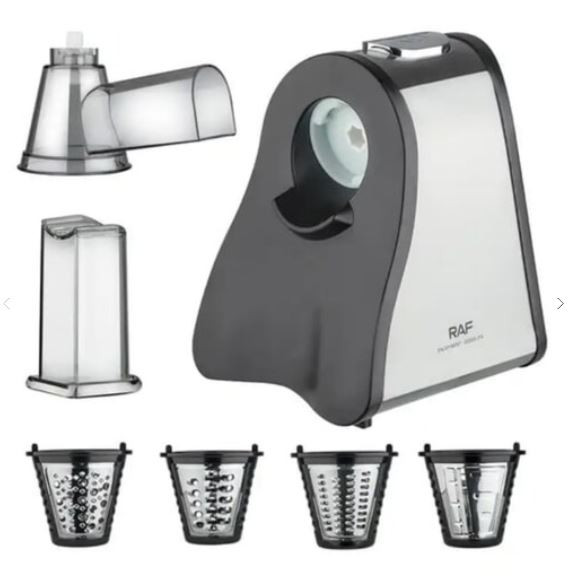 ❇️توضیحات: سالاد سازها می توانند با سرعتی معین سبزیجات را به یک سایز برش دهند، در واقع این وسایل برادر کوچک غذا سازها می باشند. طراحی سالاد سازها (رنده برقی) به گونه ای است که در همان نگاه اول می توان طرز کار با آن را یاد گرفت و با توجه به سایز دهانه ورودی دستگاه می توان از آن برای برش زدن و قطعه کردن انواع مواد غذایی استفاده کرد. کمپانی راف با در نظر گرفتن این نیاز، سالاد سازی تولید کرده است که با آن میتوان انواع مواد غذایی را با 4 دیسک خود که برای آن در نظر گرفته است برش زد. این سالاد ساز دارای 4 دیسک برای برش رشته ای نازک، ضخیم، خلال و رنده یا آسیاب می باشد. یکی از مزایای مهم در این نوع سالاد ساز قدرت موتور، جنس و نوع تیغه های آن می باشد، موتور این سالاد ساز با توان 200 وات بوده که برای انجام نظیر خردکن موادغذایی از توانی کافی برخوردار است. همچنین موتور این دستگاه دارای تنظیمات سرعت به صورت فشاری می باشد و جنس تیغه ها نیز از استیل ضد زنگ می باشند و زمانی که با قدرت موتور بالا ترکیب می شوند توانایی خرد کردن انواع مواد غذایی را دارند. همچنین این سالاد ساز قابلیت جدا سازی قطعات دارد و پس از کار می توان تک تک اجزای آن را شسته و از تمیزی آن اطمینان خاطر داشت.