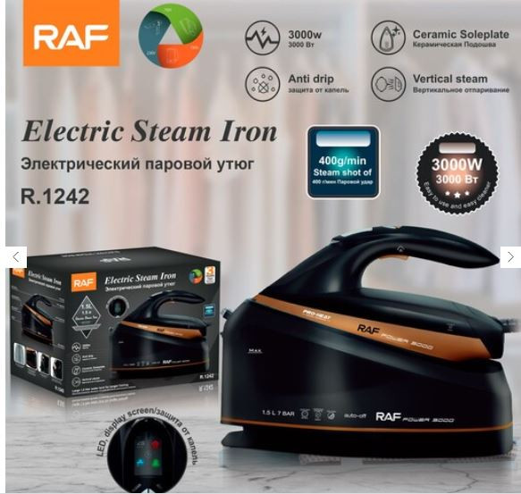 اتو مخزن دار راف مدل R.1242 محصولی بسیار با کیفیت از کمپانی راف آلمان بوده و به دلیل دارا بودن توان مناسب و بالای خود قادر است هر نوع لباسی را به خوبی صاف کرده و از شر چین و چروک در امان نگه دارد. توان مصرفی این دستگاه 3000 وات است که بسیار پرقدرت است ودر مدت زمانی خیلی کم آماده استفاده می شود. این اتو با طراحی مدرن و بروز خود برای کسانی که به سادگی و زیبایی اهمیت می دهند انتخاب خوبی می باشد. همچنین میزان فشار بخار تولید شده توسط دستگاه برابر با 7 بار است که نسبت به دیگر برندهای تولید کننده اتو مخزن دار در حد بسیار عالی می باشدکه قویترین اتو مخزن دار هست. وجود فشار بخار بالا به همراه توان حرارتی مناسب توانایی حذف هر چروکی را دارا است. گنجایش مخزن آب در اتو مخزن دار راف مدل 1242برابر با 1.5 لیتر می باشد که از این نظر هم نسبت به اتومخزن دار های موجود در بازار برتری دارد. به دلیل استفاده از آب شهری برای پر کردن مخزن آب و همچنین وجود رسوبات مختلف در آب از جمله آهک، این دستگاه مجهز به سیستم ضد رسوب و سیستم رسوب زدا می باشد که خیال مصرف کننده را از این بابت راحت می کند. با این قابلیت هیچ رسوبی در اتو باقی نمانده و تمامی آنها پس از استفاده از این قابلیت از دستگاه خارج می شود. از دیگر امکانات دیگر این دستگاه می توان به 400 گرم شات در دقیقه، 250 گرم خروجی پیوسته بخار در دقیقه، صفحه نمایش LED، سیستم قطع خودکار، قابلیت تنظیم میزان بخاردهی، قابلیت بخاردهی عمودی، سیستم ضد چکه اشاره کرد. در مجموع اتومخزن دار راف مدل 1242، با امکانات بی نظیر خود و قیمت مناسبش، میتواند جدی ترین گزینه شما برای انتخاب یک اتوی مناسب باشد و خیال شما را از بابت کیفیت و کارایی برای سالیان سال راحت کند.