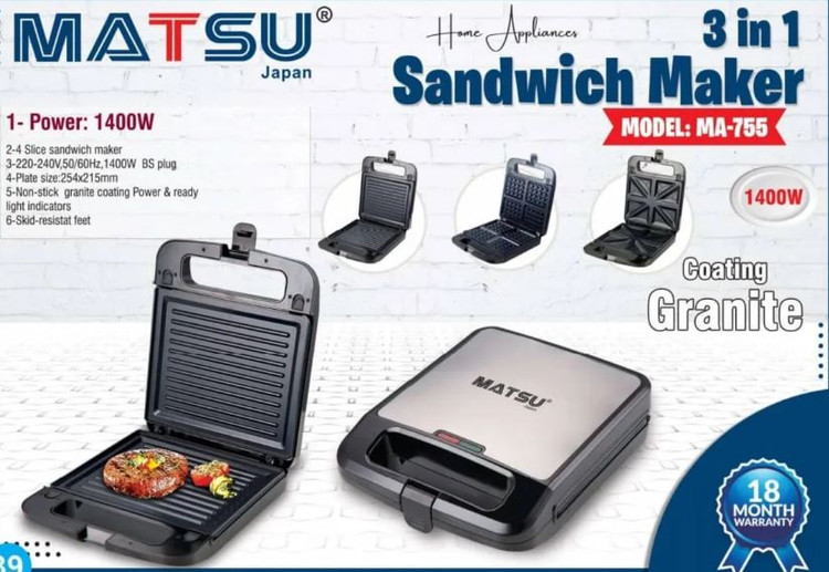 ساندویچ ساز 3 کاره - برند ماتسو ژاپن مدل 755