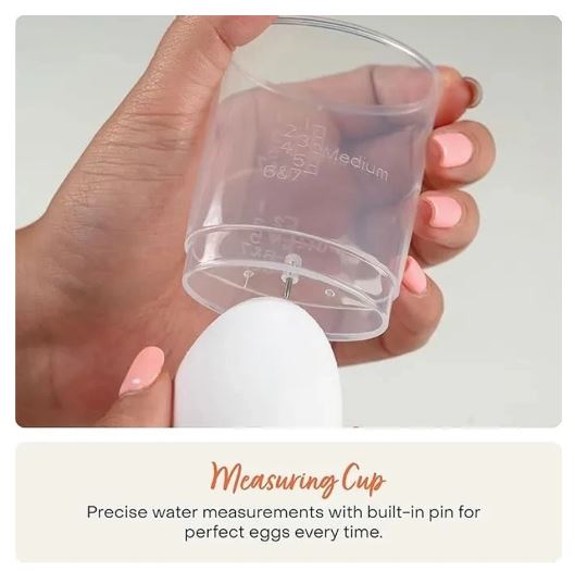 - پیمانه اندازه گیری با سوزن سوراخ کننده: برای اندازه گیری دقیق آب و جلوگیری از ترک خوردن تخم مرغ ها در حین پخت