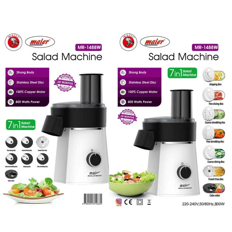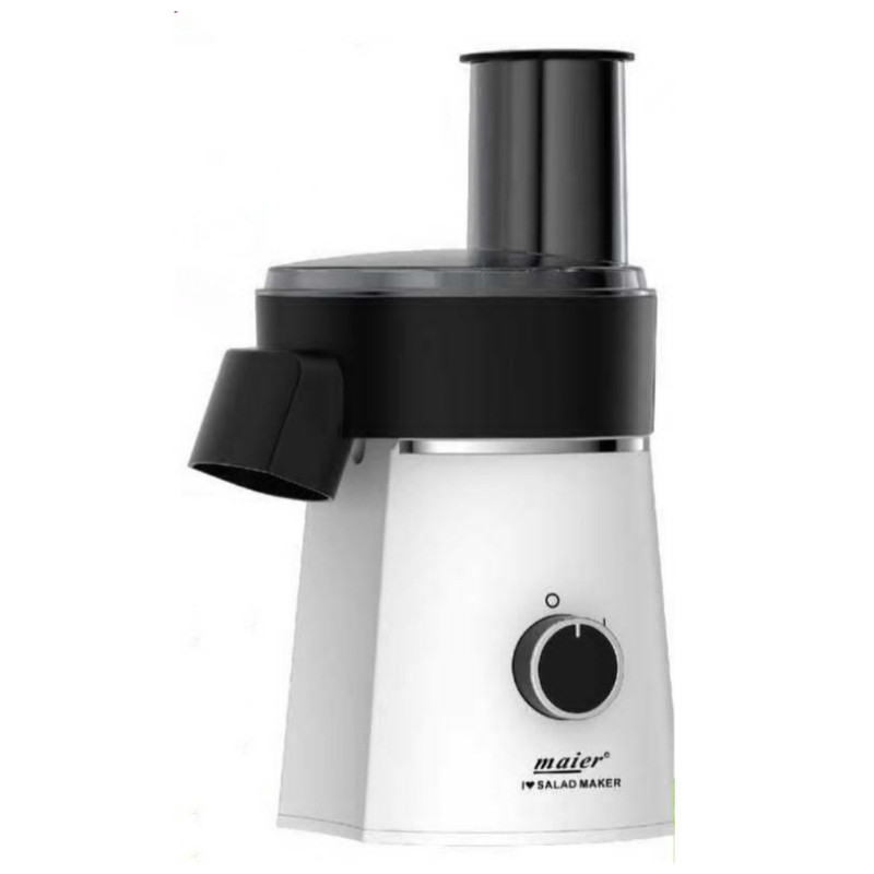 این دستگاه دارای موتور قدرتمند مسی با توان مصرفی 800 وات است. بدنه از جنس پلیمر مقاوم و محکم ساخته شده است. دارای 7 تیغه از جنس استیل ضد زنگ میباشد که هر کدام کاربرد خاص خود را داشته و نیاز های شما را به طور کامل برطرف می کند. لازم به ذکر است یکی از تیغه های دستگاه برای تهیه برش نگینی یا سالاد شیرازی طراحی شده است . تیغه ها و سایر لوازم جانبی دستگاه قابلیت شست و شو در ماشین ظرفشویی را دارند. طراحی رنده مایر رنگ این محصول سفید و مشکی است. دارای پایه ضد لغزش برای ثابت ماندن دستگاه بر روی سطوح است. نوع عملکرد به صورت چرخش تیغه می باشد . یک دکمه برای خاموش و روشن شدن دستگاه بر روی بدنه طراحی شده است. لذا کار با این رنده برقی بسیار آسان بوده و کافی است تا رنده ی مورد نظر را در جایگاه قرار دهید و دکمه ی روشن را بزنید