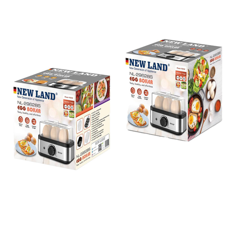 تخم مرغ یکی از غذاهایی است که وجود آن در وعده های غذایی به ویژه صبحانه، جزو ضرورت ها به حساب می آید و وجود یک دستگاه تخم مرغ پز « Egg Boiler » در هر آشپزخانه ای لازم و مورد نیاز است. نیولند در میان محصولات کاربردی خودش، دستگاه ساده و کاربردی تخم مرغ پز مدل NL-2962BS را طراحی و تولید کرده است. این محصول NEWLAND گنجایش نگهداری 6 عدد تخم مرغ را بر روی سینی خودش دارد و دارای سیگنال صوتی پس از اتمام جوش می باشد از دیگر ویژگی های این مدل می توان به نشانگر نور و تایمر داخلی ان اشاره کرد.