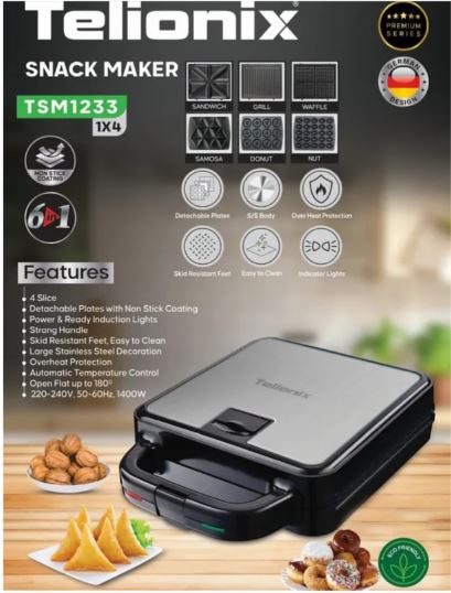 اسنک ساز و ساندویچ ساز ۶ کاره پرمیوم برند تلیونیکس مدل ۱۲۳۳۵٬۷۵۰٬۰۰۰ 4%